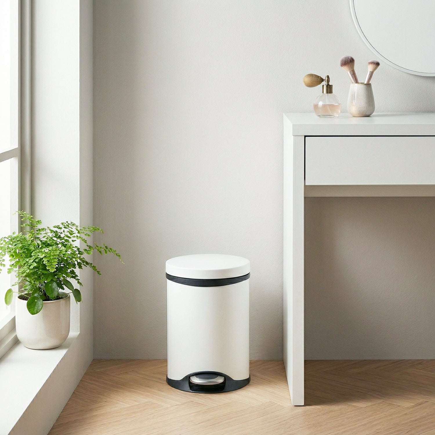 OUTLINE LITE Pedalbøtter 6L i hvit lakkert rustfritt stål.