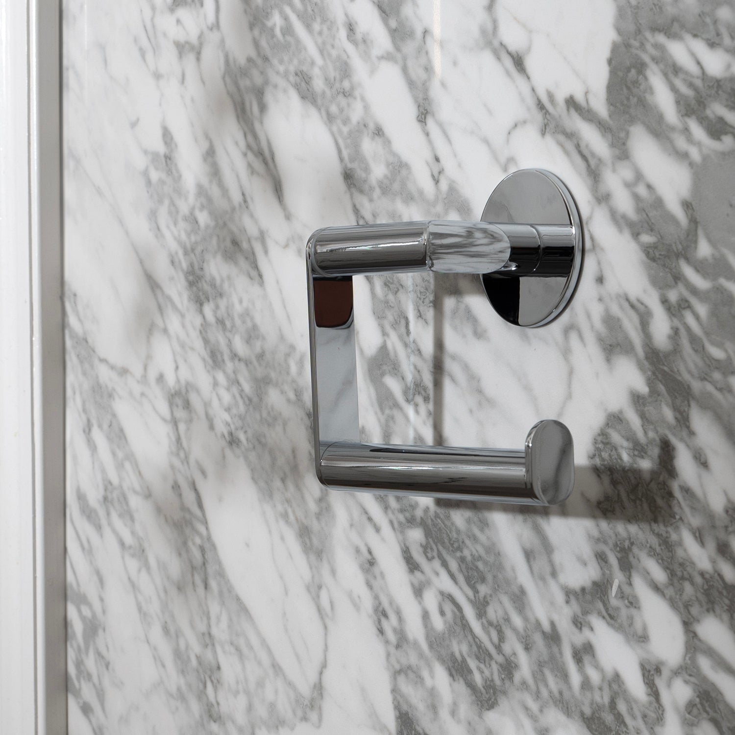 Swingable toilet paper holder with an elegant backplate. Get a new feeling in your bathroom by sprucing it up with products from our timeless bathroom series DOT. Polished chrome contributes to a luxurious and sleek atmosphere in the bathroom. Style it together with other products from the series for a cohesive look.