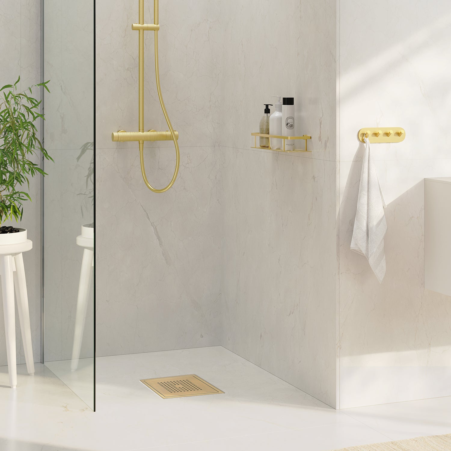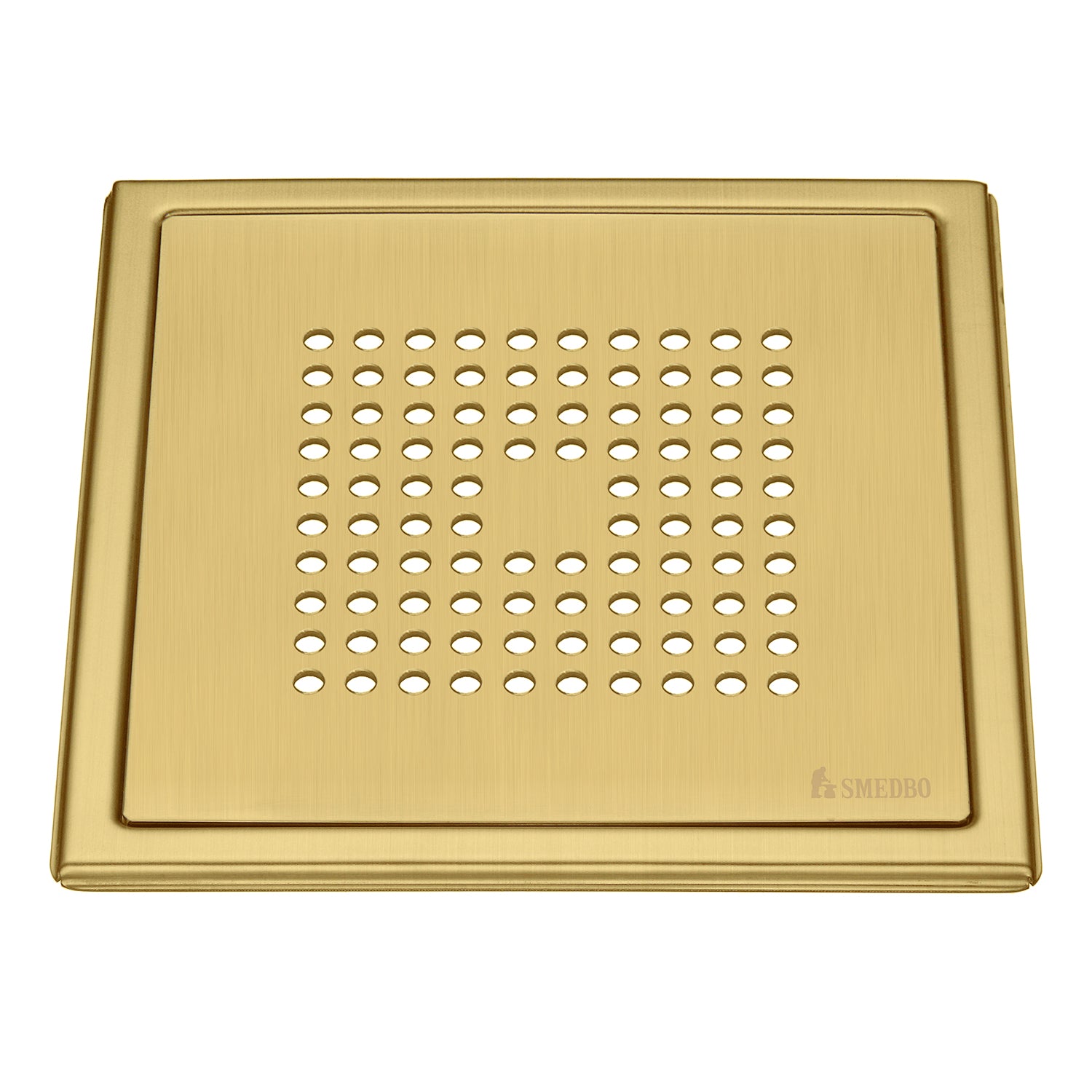 OUTLINE Floor Grating. Brushed Brass. Pattern: Square. 200 x 200 mm. Height 5,5 mm.
